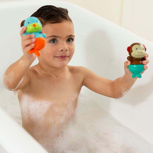 Switch it up at tub time with our cute mix & match mermaid bath toys set. Designed to twist apart, the mermaid tails are interchangeable for extra fun! Each two-piece bath toy is also easy to clean and floats in water. Soak up the fun with our full line of ZOO® baby and toddler bath toys.