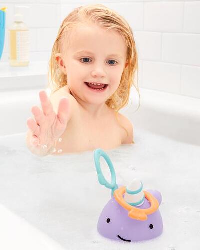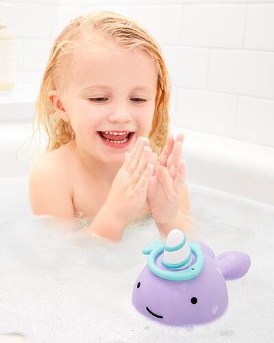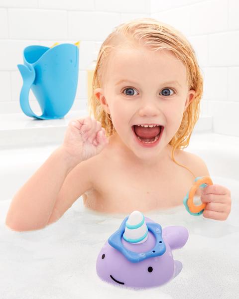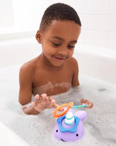 This tub time friend is ready to ring it on! Our adorable narwhal is all set for a game of catch with your little one. Just toss the rings onto its horn and score a splash of bathtime fun!