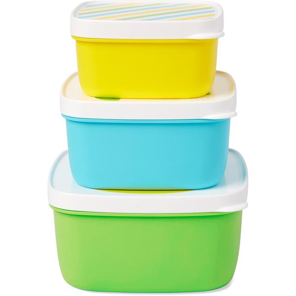 Perfect for crackers, veggies, fruit and more our kid-friendly ZOO® snack box set features cute and colorful snap-on lids to keep food freshâat home and on-the-go. The space-saving nesting design includes three different size boxes to suit your needs and features Skip Hopâs signature Zoo animals.