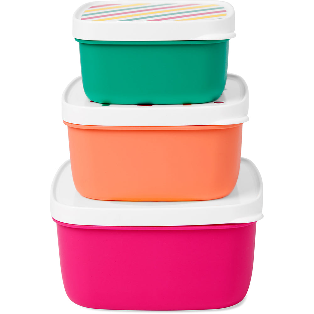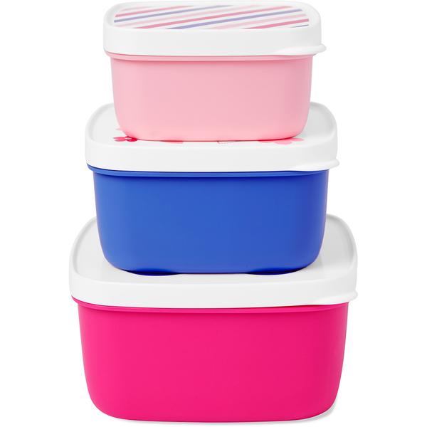- Includes 3 different size snack boxes with lids