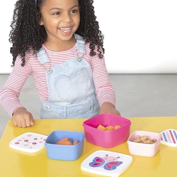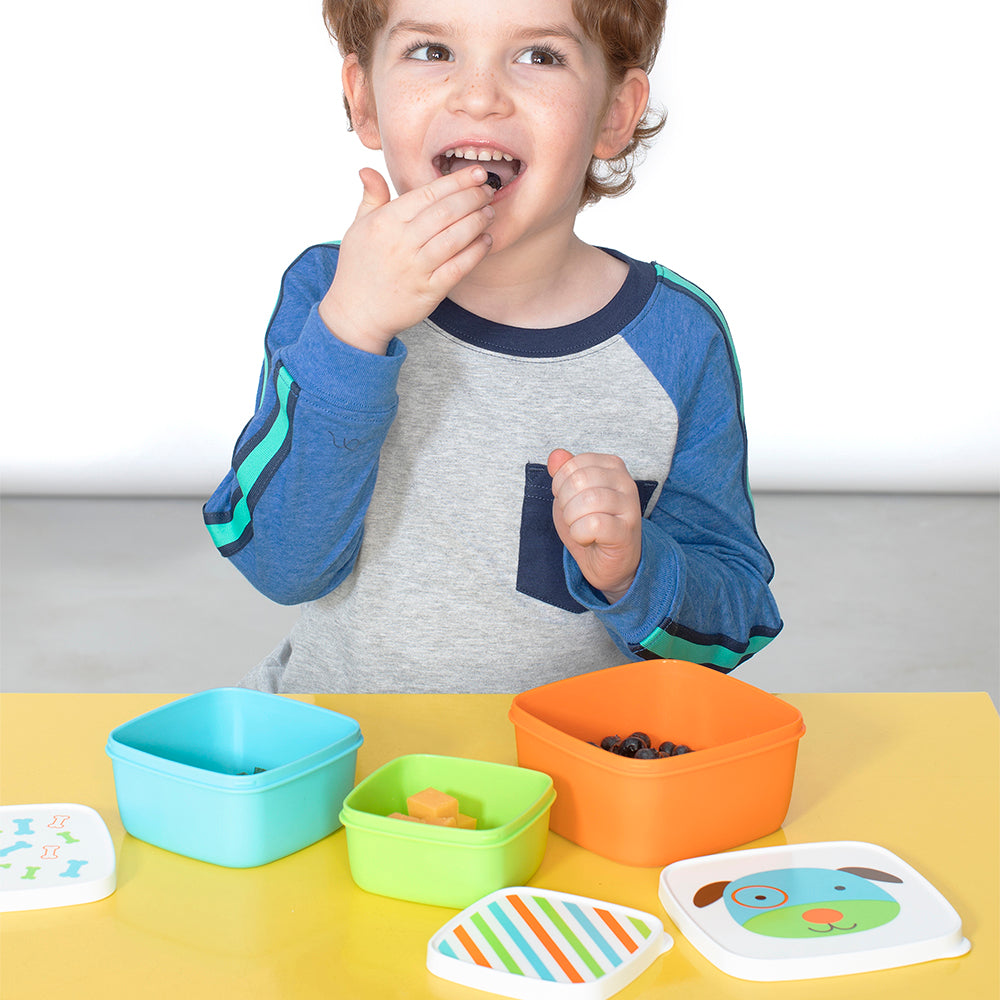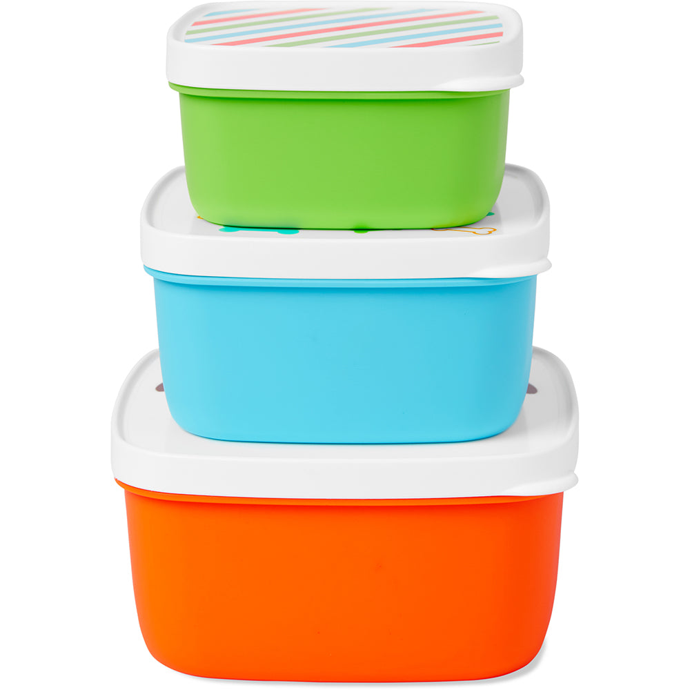 Perfect for crackers, veggies, fruit and more our kid-friendly ZOO® snack box set features cute and colorful snap-on lids to keep food fresh—at home and on-the-go. The space-saving nesting design includes three different size boxes to suit your needs and features Skip Hop’s signature Zoo animals.