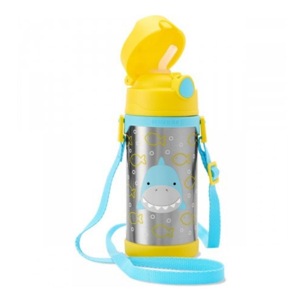 Skip Hop Zoo Insulated Stainless Steel Straw Bottle is a water bottle with strap for kids to bring hot or cold water to school or on trips! With adorable Skip Hop Zoo characters printed on it, kids get to choose their favourite animal on their water bottle. Now kids can drink warm water on a cold day and cold water on a hot day when they are out on a school trip.