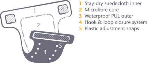 - Do not soak. Store in a dry bucket or a Snazzipants Nappy Pail (hang bag).
