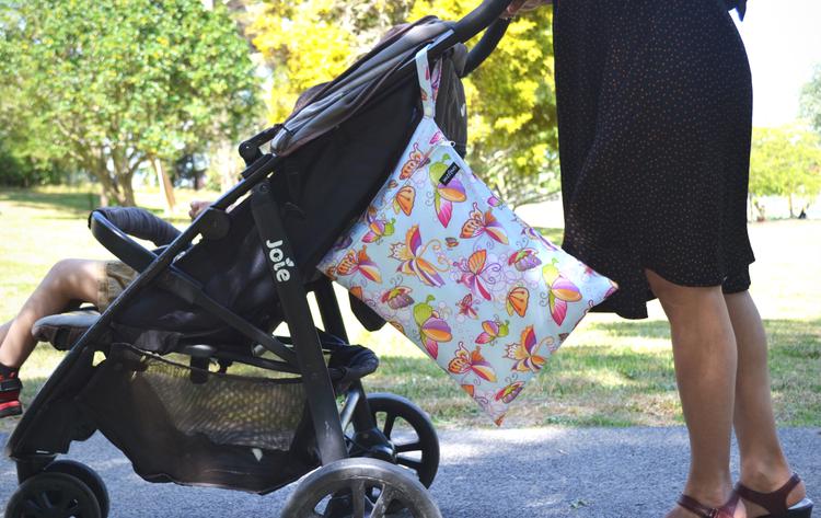 When you are out and about, have one tucked into your handbag for wee accidents, dirty bibs at the cafe, wet togs, the list is huge. The Brolly Sheets team also use them whilst travelling for shoes and socks & undies. They come with an elastic loop and a handy strap which makes it easy to hang on prams and school bags!
