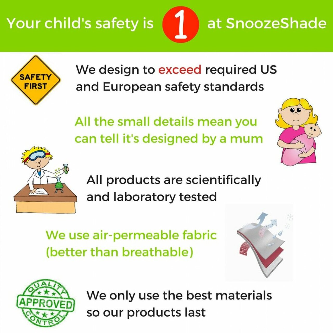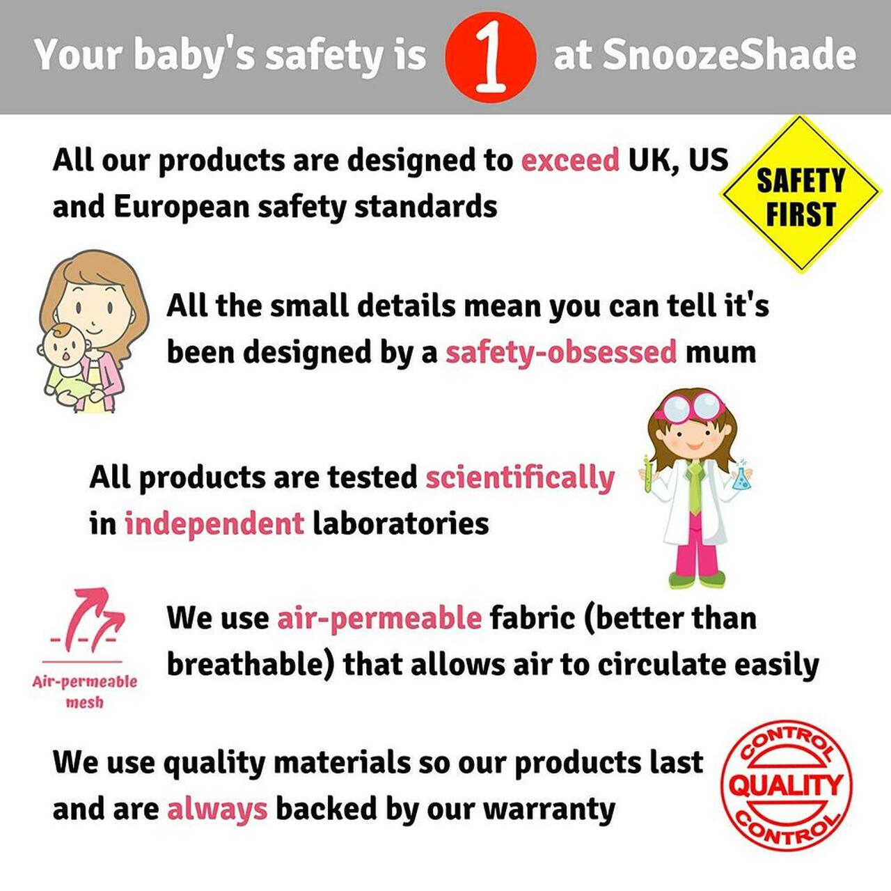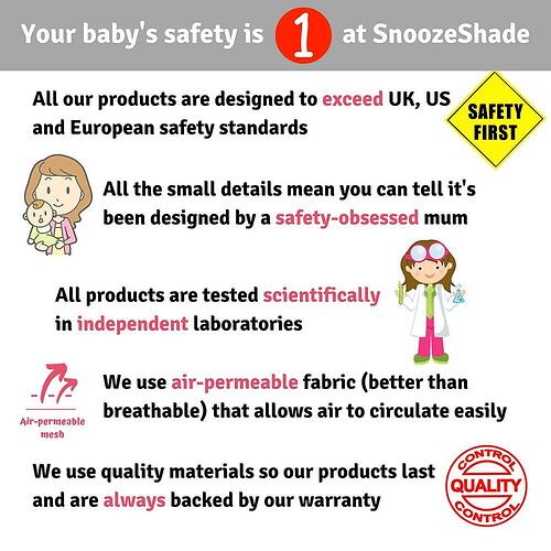 Parents often find when they start to use SnoozeShade regularly, it becomes a sleep trigger for their child in the same way that shutting the curtains in the nursery is a signal that it is sleep time.The new sleeping baby emblem deters well-meaning people from disturbing your sleeping baby.
