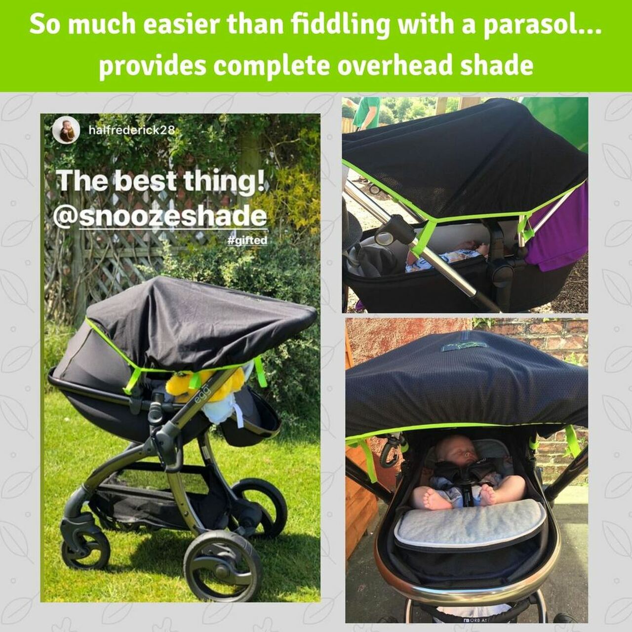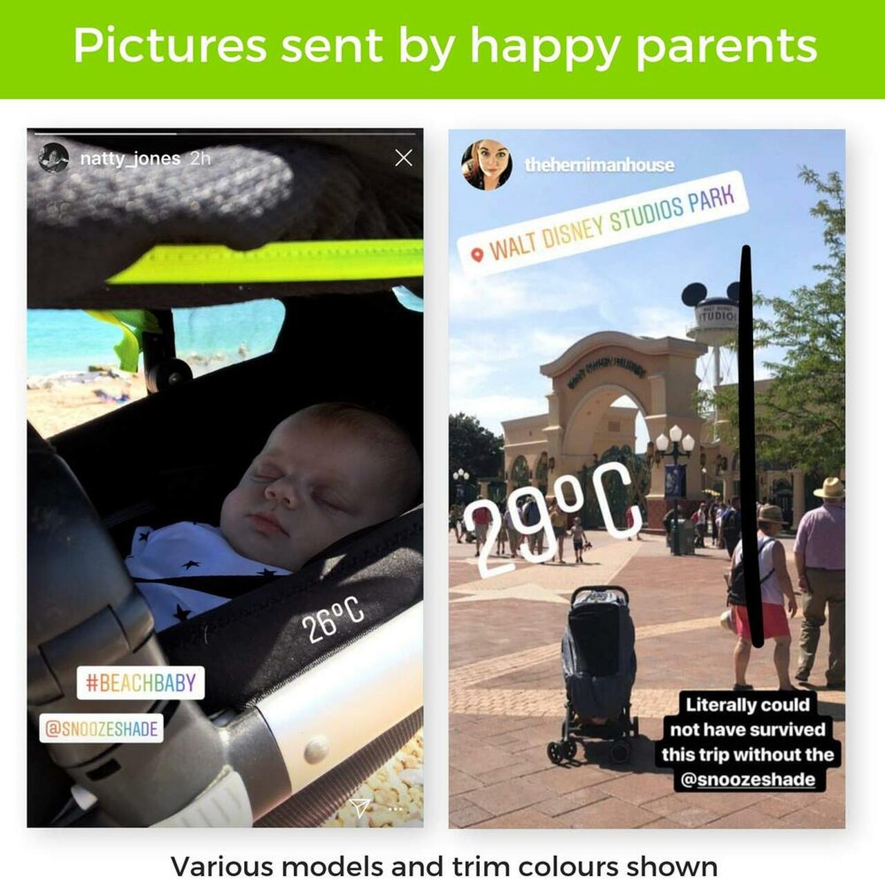 SnoozeShade Original is Britain’s best-selling and multi-award-winning sun shade and baby sleep aid for prams, buggies, travel systems and pushchairs that protects babies from the sun and makes any time sleep time.