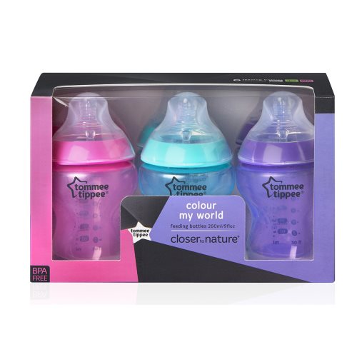 1 x Tommee Tippee - Closer to Nature Bottle 260ml (3pk) - Assorted