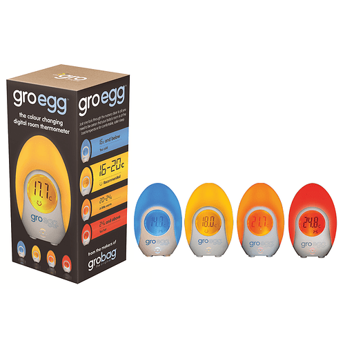 Peace of mind at a glance – the innovative Gro-egg changes colour to let you know at a glance whether the temperature of a room is too low, too high or just right, helping you maintain a safe sleeping environment for your baby. As an added bonus it even works well as a gentle night light.