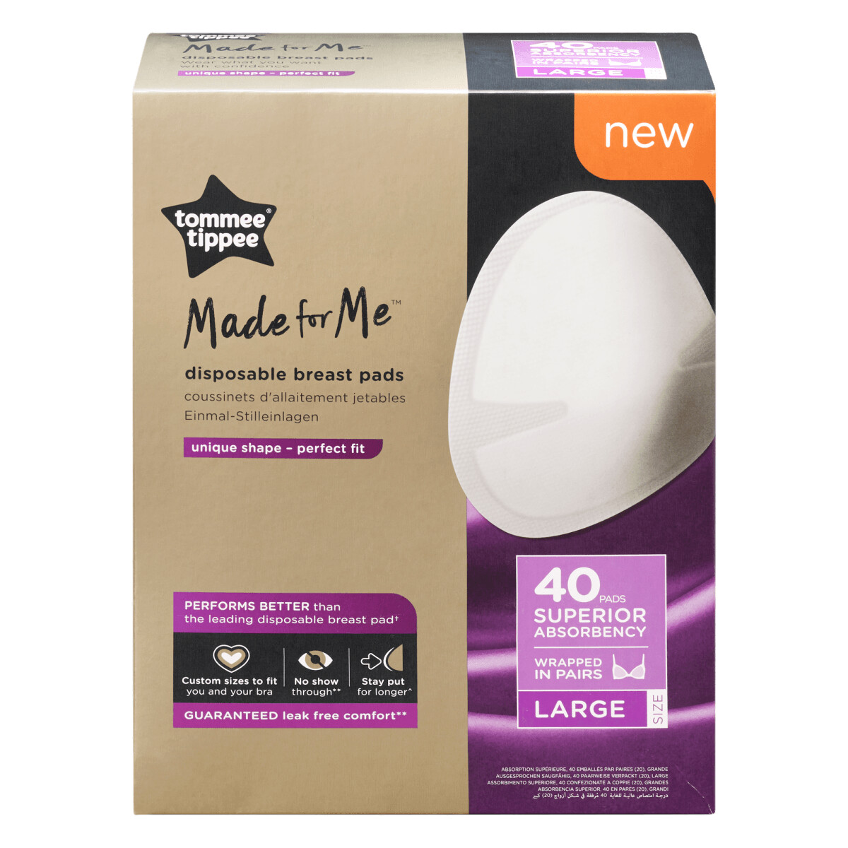 Discreet and custom-sized to fit your bra, our Made for Me super-absorbent disposable breast pads deliver greater comfort and performance than all other leading breast pads day or night*.