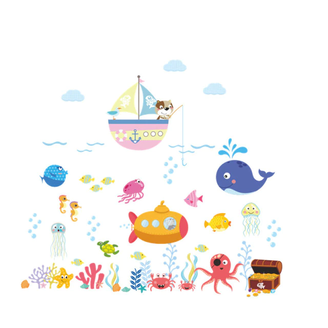 Underwater Fish Bubble Boat Turtle Wall Sticker Decals