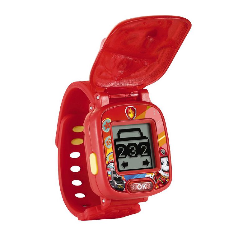 Learning watches with Paw Patrol movie themed content. Marshall, Chase and Liberty versions with 3D sculpted character face covers. Real digital watch with choice of Paw Patrol themed clock displays. Help Chase, Marshall and Liberty on their missions around Adventure City with 4 built-in games. Teaches numbers, directions, memory abd hand/eye co-ordination. Includes alarm, timer and stop watch functions.