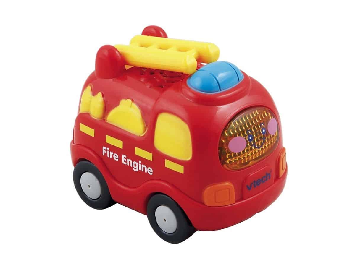 The Toot-Toot Drivers Big Fire Engine is full of fun. This chunky fire engine and its mini friend are perfectly sized for little hands. The big engine’s manipulative features include an extending ladder, big press button, and sliding fire extinguisher; it also includes three SmartPoint locations that trigger fun sounds and phrases. Press the small fire engine’s light-up screen to activate three sing-along songs, six melodies, and realistic sound effects.