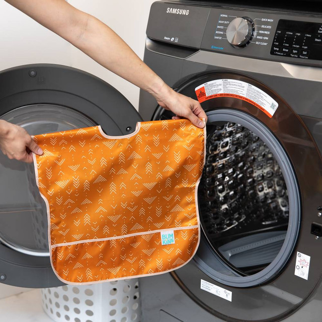 Who has time to hand wash? Here at Bumkins, we're all parents. We know there's no end to the laundry, so we've made it even easier for you. Flip that pocket inside-out, fasten your aplix, and toss that bib into the washing machine
