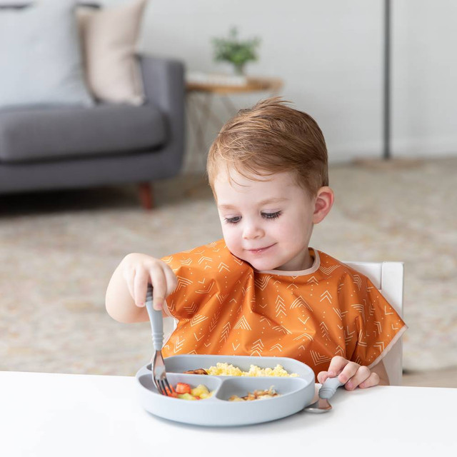 We know mealtime is messy. Thankfully, our waterproof bibs feature a handy catch-all pocket so you can spend less time digging crumbs out of the highchair. Instead, let those little ones work on those fine motor skills by digging into the crumb-catching pocket.