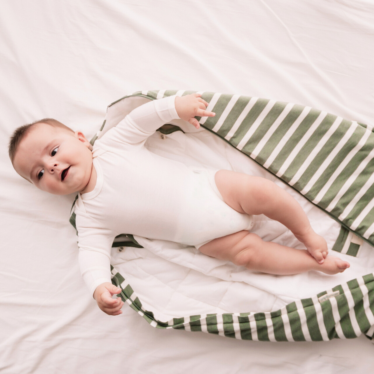 Relax! I'm Cosy. Woolbabe's quality and focus on safety means peace of mind for parents. The combination of merino and organic cotton offers the best of both worlds. The merino component helps to regulate body temperatures, keeping your baby a comfortable temperature all night. This gives you peace of mind and helps everyone get more sleep.