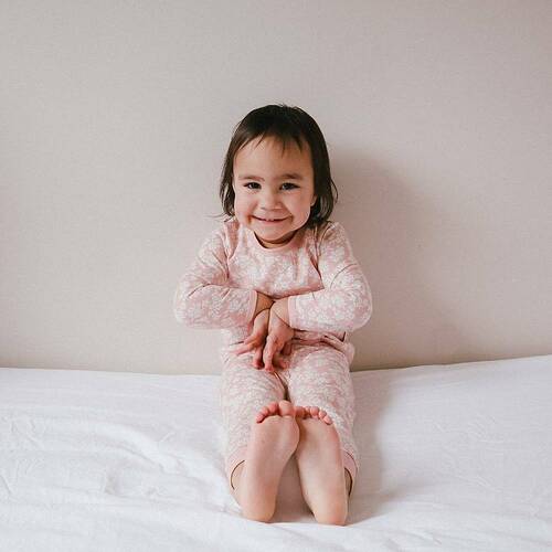 Made from Woolbabe's exclusive merino + organic cotton fabric, the merino to help with temperature regulation and makes the Pyjamas are perfect for a wide temperature range. Ideal for Autumn through to Spring, when the temperature can be all over the place and children are often kicking off their covers and waking up cold in the cool hours of the morning. Or use as a lighter option than a sleeping suit on summer nights.